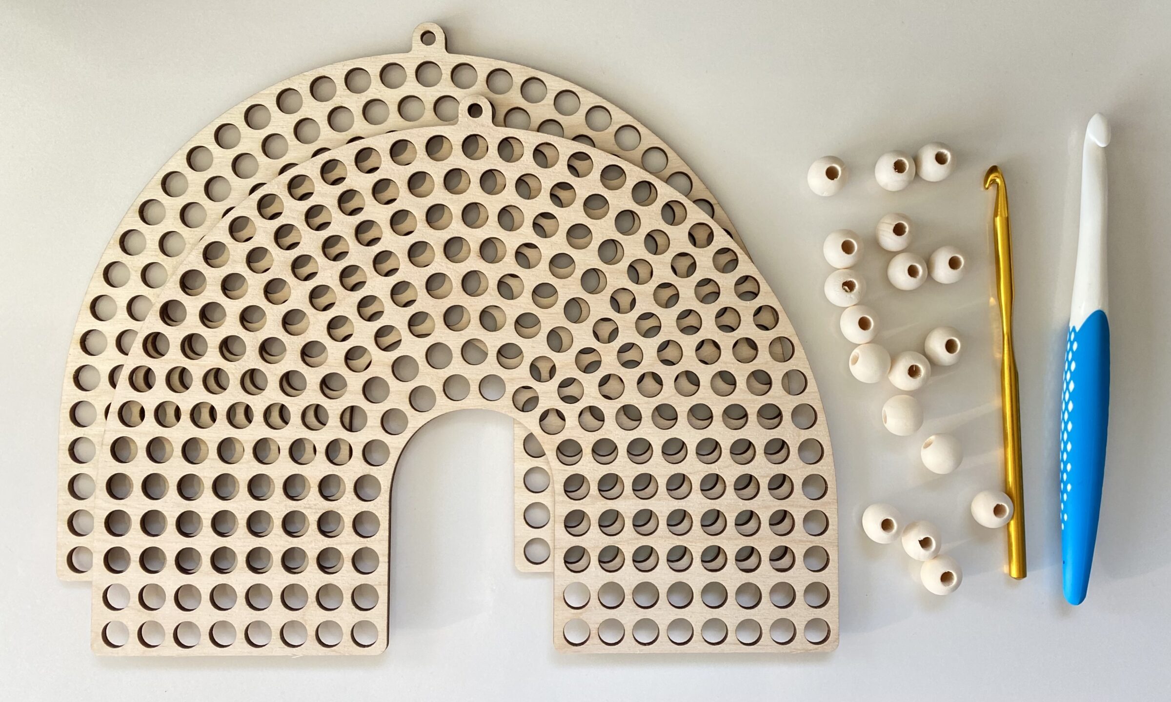 Der Durchmesser der einzelnen Löcher beträgt 9 mm, für die Herstellung wurde 3 mm Birken-Sperrholz verwendet.